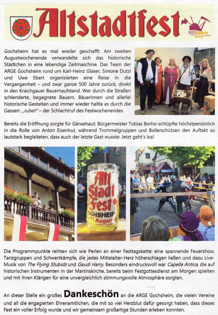 Altstadtfest 2025 in Gochsheim 09.08.2025 – Hier der Bericht vom Altstadtfest aus dem Mitteilungsblatt der Stadt Kraichtal Nr. 35 vom 28.08.2025: