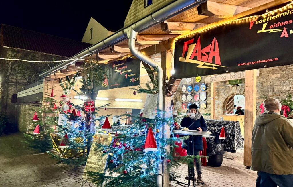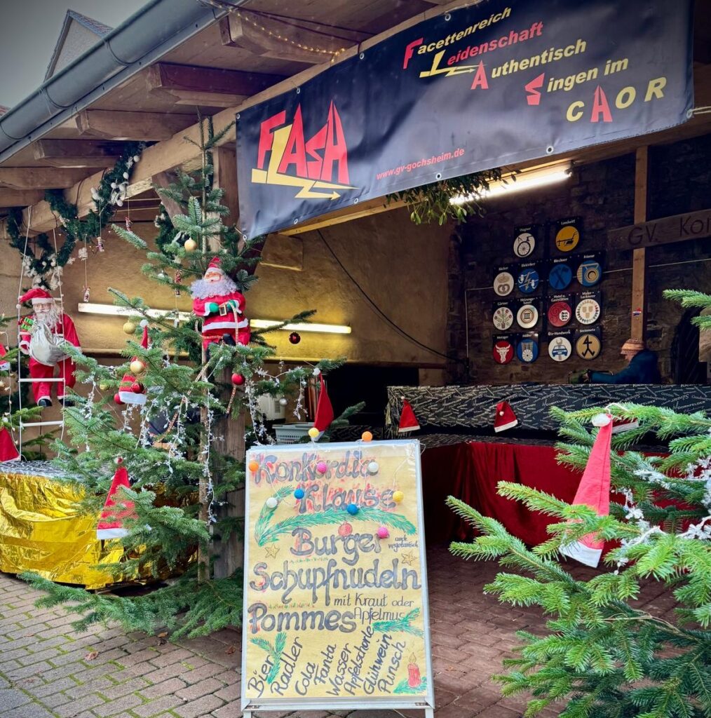 29./30.11.2025 – Petrus meinte es nicht unbedingt gut mit den Weihnachtsmärkten an diesem Wochenende. Während man am Samstagabend trocken durch die leuchtend geschmückten Gassen um das Gochsheimer Schloss flanieren konnte, lockte der nasse Sonntagnachmittag nur bedingt zu einem Besuch des Weihnachtsmarktes.